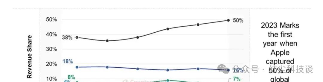 全球智能手机市场的平均售价(ASP)在2023年达到了350美元,较去年上涨了5.5%,这一增长表现出市场的复苏趋势,尤其是在高端智能手机领域的扩张。这一数据显示,即便在面临全球经济挑战的情况下,消费者对高质量和高性能手机的需求仍在上升。