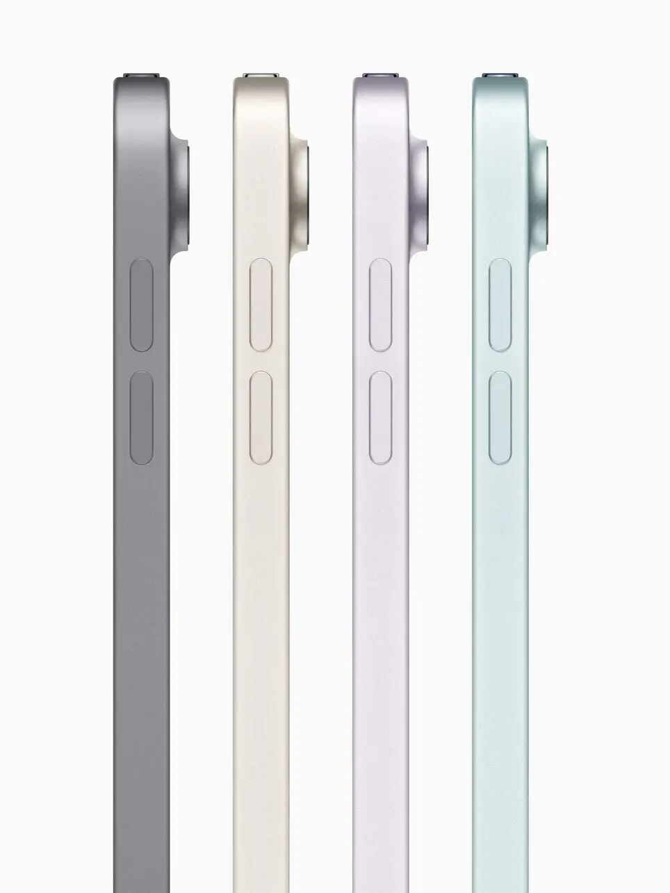 两款机型皆提供非凡性能和先进功能,令 iPad Air 变得更强大,更具多用性。依托 M2 芯片内更快的中央处理器、图形处理器和神经网络引擎,新款 iPad Air 的性能更强劲,是一款能够发挥人工智能实用功能的强大设备。支持人物居中的 1200 万像素超广角前置摄像头现移至 iPad Air 的横向长边上,提供绝佳的视频通话体验。新款 iPad Air 还支持高速的无线局域网,蜂窝网络机型可支持超高速 5G 网络,让用户可以随时随处保持联网。便携设计,满足一天所需的电池续航,出众的 Liquid 视网膜显示屏,支持 Apple Pencil Pro、Apple Pencil (USB-C) 和妙控键盘,新款 iPad Air 可为用户的生产力和创作开启更多可能性。除了星光色和深空灰之外,新款 iPad Air 还新增蓝色、紫色两种炫彩外观。