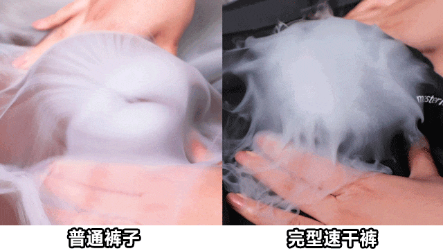 完型速干裤只用了短短3分钟已经完全干透!另一条速干裤用纸巾擦拭,还是湿的~