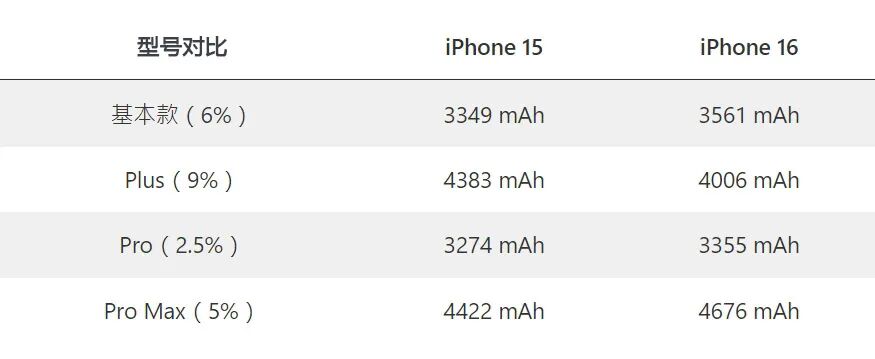 iPhone 16 系列电池容量