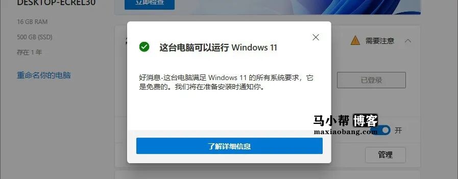 但11的升级对硬件有一定的要求,一些老旧的电脑可能没办法升级Windows11。想要知道你的电脑是否支持升级11可以下载微软官方的检测工具进行检测。如果你的电脑不是太老,用软件检测不支持也不用担心,有可能是因为你没有开启UEFI启动或TPM,在BIOS里面开启即可。