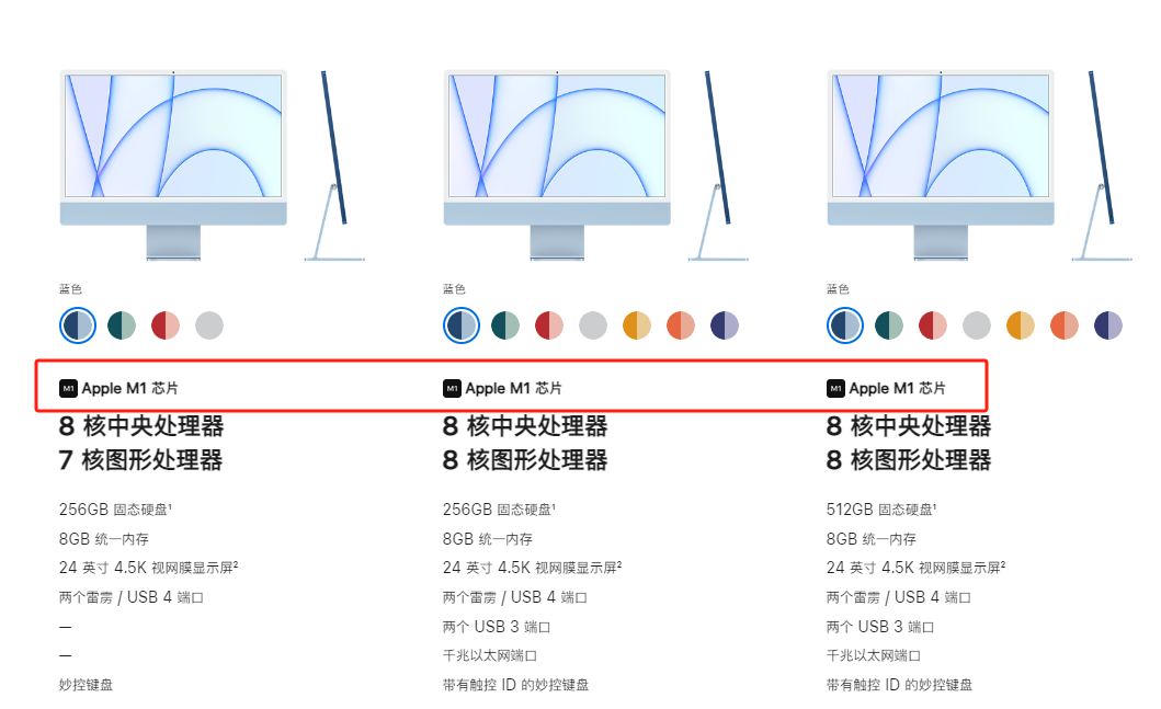 值得注意的是,现款24英寸iMac还是2021年4月发布、搭载M1芯片的「老古董」。