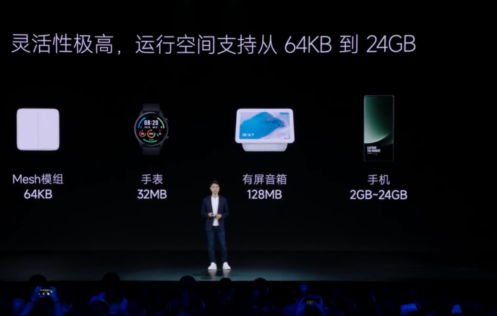 在底层适配上,Xiaomi HyperOS 支持 200 多个处理器以及其搭载的硬件产品,并且在存储支持上,它能最小支持 64KB的设备!这使得它能在形态各异的设备上无缝运行,如手表,耳机和路由器等设备,丰富了生态环境。这一点与华为鸿蒙生态领域,有异曲同工之妙。