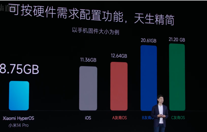 与此同时,Xiaomi HyperOS 的升级安装包等 OTA 文件也会比友商要小很多。这会让手机等设备的出厂可用存储变多一些。